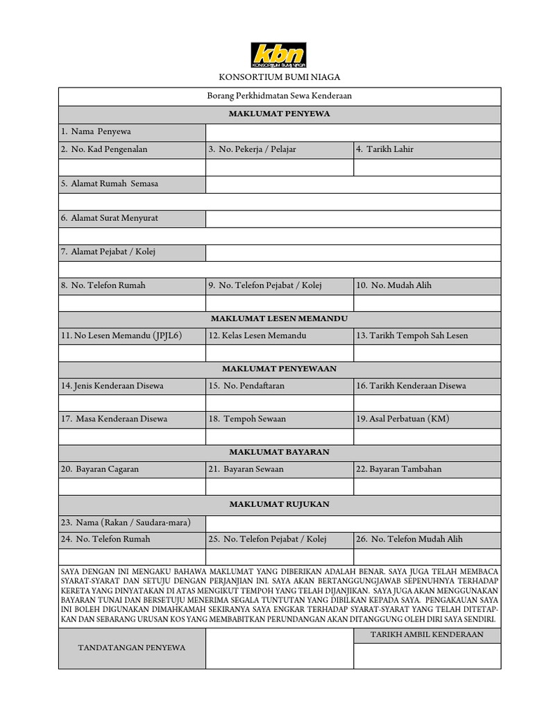 Borang pembaharuan lesen perniagaan. Dalam Surat Perjanjian Sewa Kenderaan terdapat beberapa butiran yang perlu ditulis di dalam surat perjanjian ini iaitu. Sebagai balasan pemilik kereta akan mendapat keuntungan baik dari syarikat sewa kereta itu.